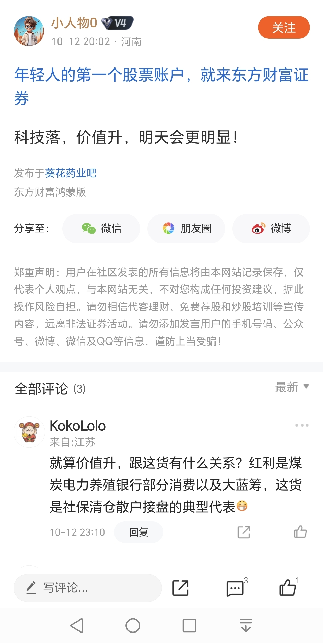 温馨提示: 1.根据《证券法》规定,禁止编造、传播虚假信息或者误导性信息,扰乱证券市场;2.用户在本社区发表的所有资料、言论等仅代表个人观点,与本网站立场无关,不对您构成任何投资建议。用户应基于自己的独立判断,自行决定证券投资并承担相应风险。《东方财富社区管理规定》