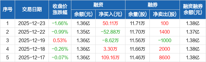 葵花药业:融资净买入50.11万元,融资余额1.36亿元(12-23)