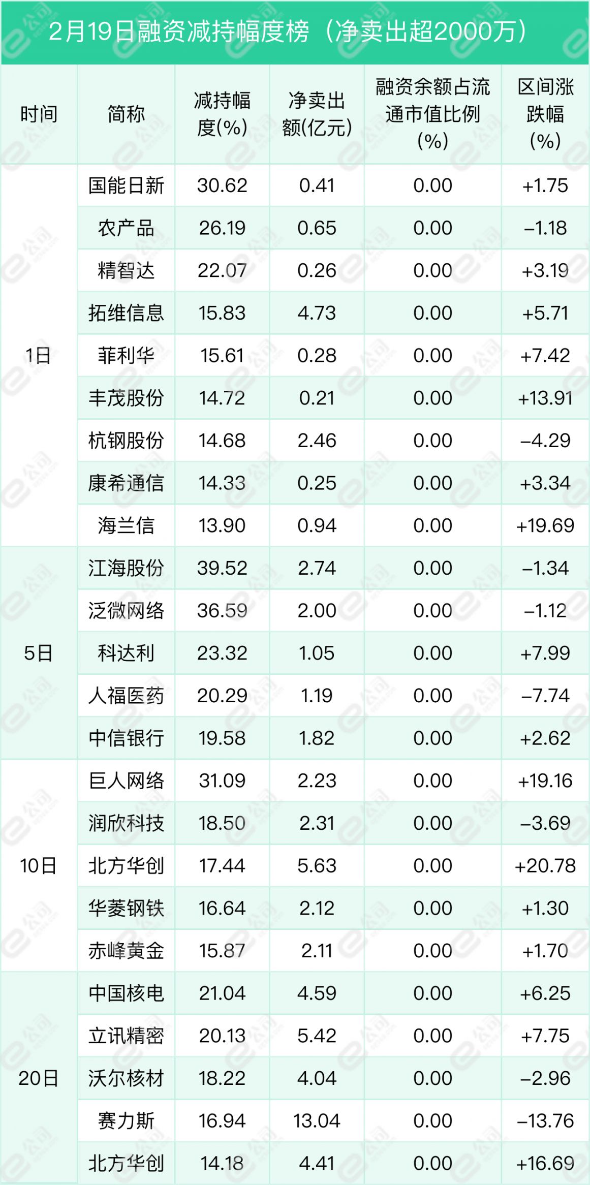 国能日新、农产品、精智达遭融资减持幅度居前,分别为30.62%、26.19%、22.07%。