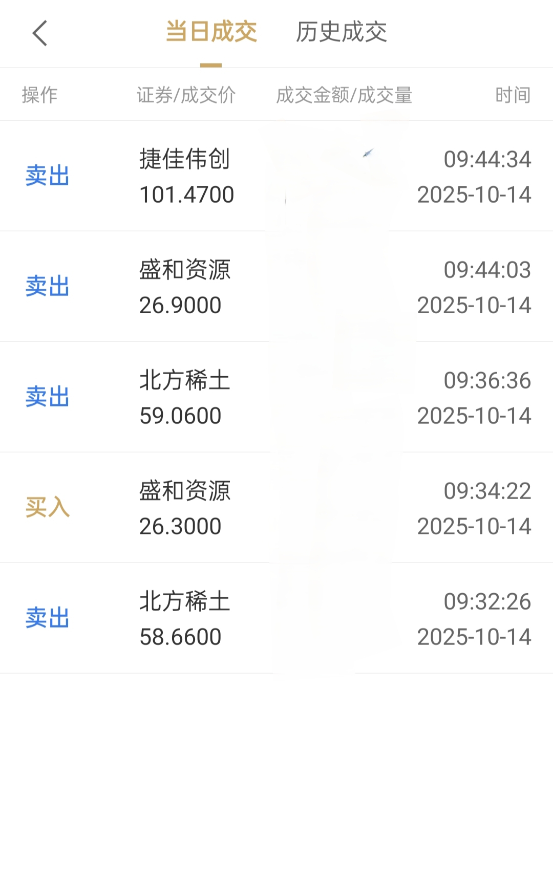 $中矿资源(SZ002738)$ 昨天红盘走了中矿是对的,今天北方稀土大涨出了,盛和资源又做了2%的日内T,昨天96加仓的捷佳伟创今天101出了,留获利盘。
