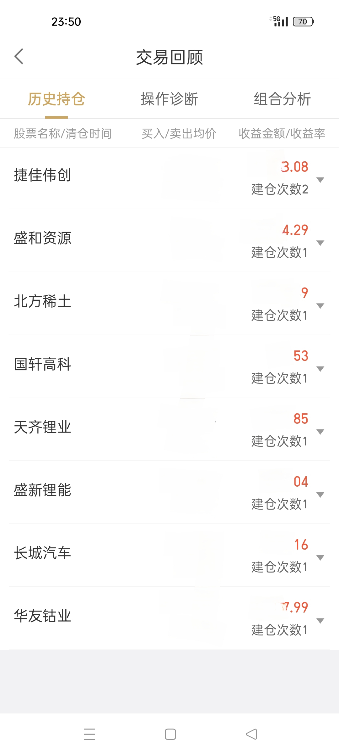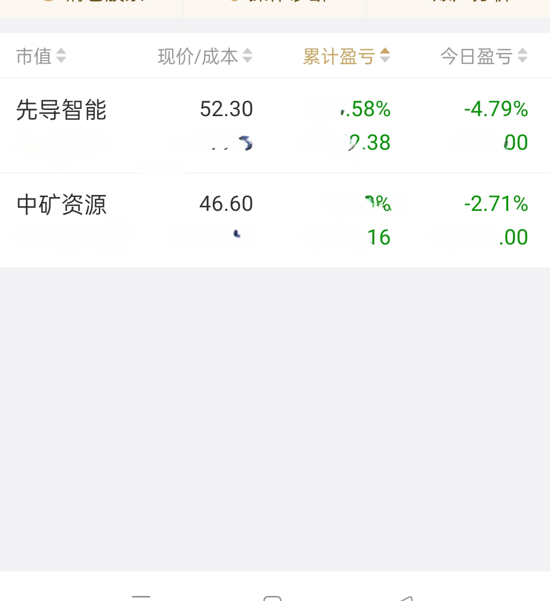 $中矿资源(SZ002738)$ 今晚回顾一下近两个月的交易,还算比较满意,到目前只有中矿资源与先导智能被套,其它全获利丰厚,中矿被套七个点,先导智能也是套几个点,万幸都是仓位比较低,后续有资金操作降低成本,最终应该也是会获利的,必然会的。目前只持有两个被套的。感觉很重要,前两天就是感觉市场资金风向不对劲就收缩到停止新开仓。后面择机会解套这两个倒霉蛋了。