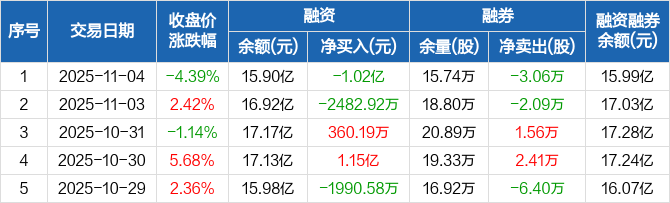 中矿资源:融资净偿还1.02亿元,融资余额15.9亿元(11-04)