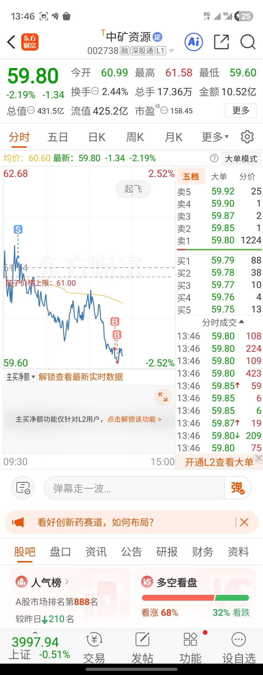 $中矿资源(SZ002738)$ 智者我来救你们,我来把尾盘拉到62
