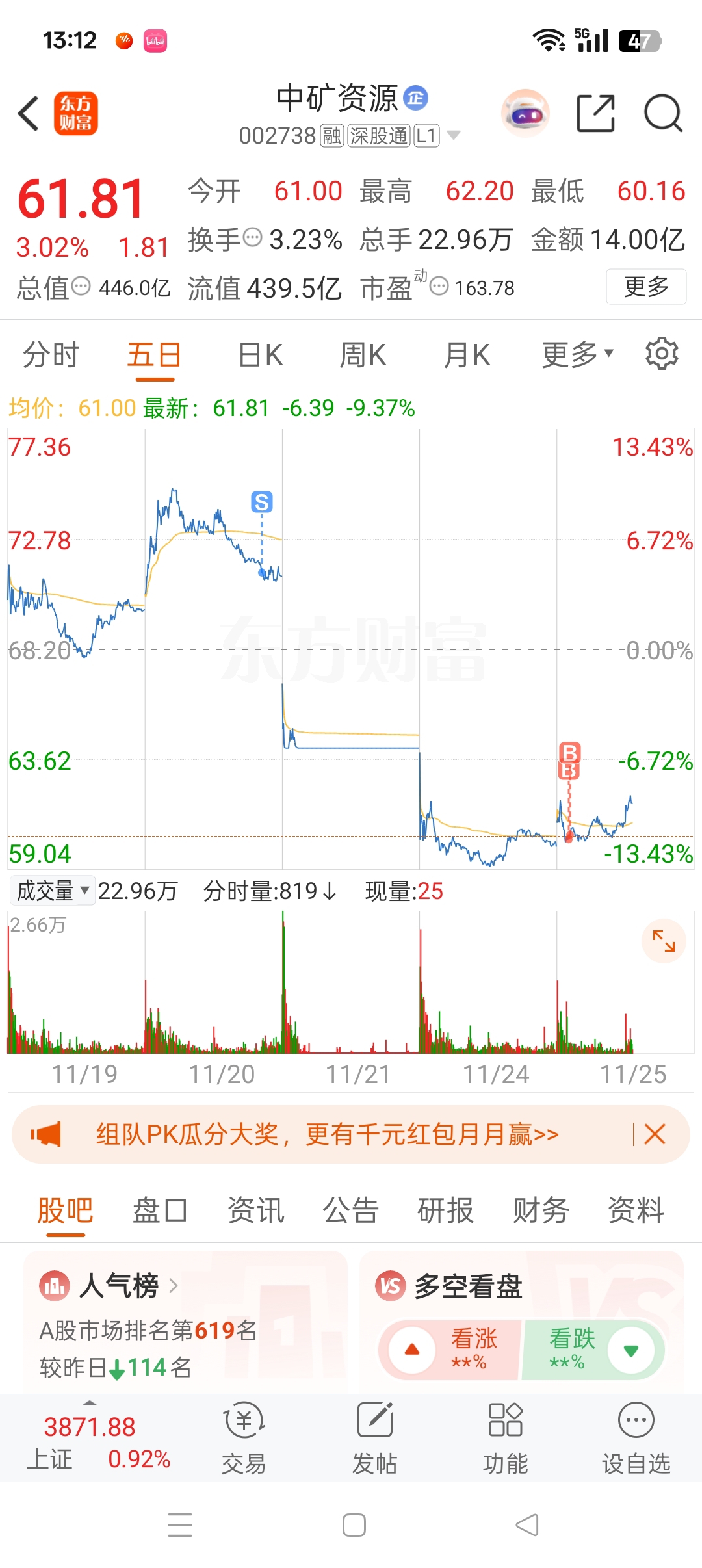 $中矿资源(SZ002738)$ 可惜买的不够,才一半仓位