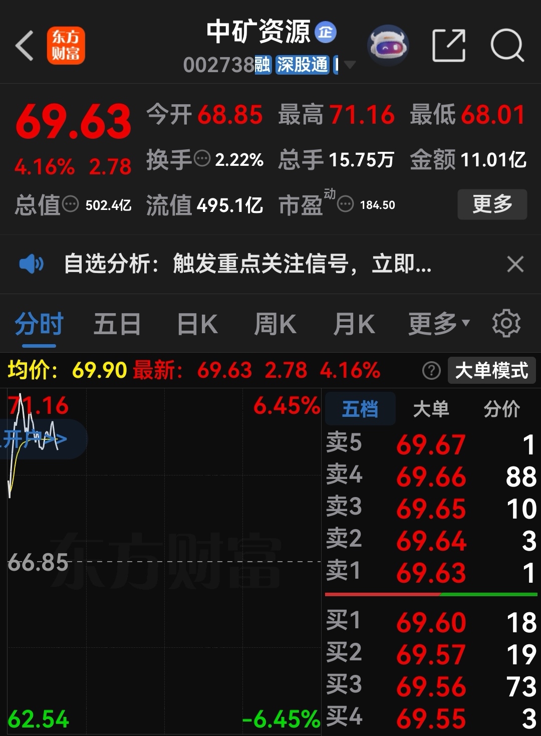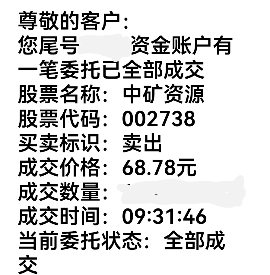 以68.68下单卖出61.38买的中矿资源,结果以68.78成交了,不知道是该开