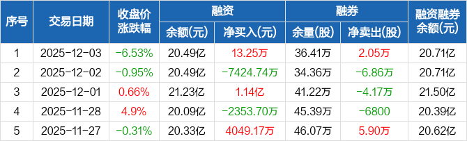 中矿资源:融资净买入13.25万元,融资余额20.49亿元(12-03)