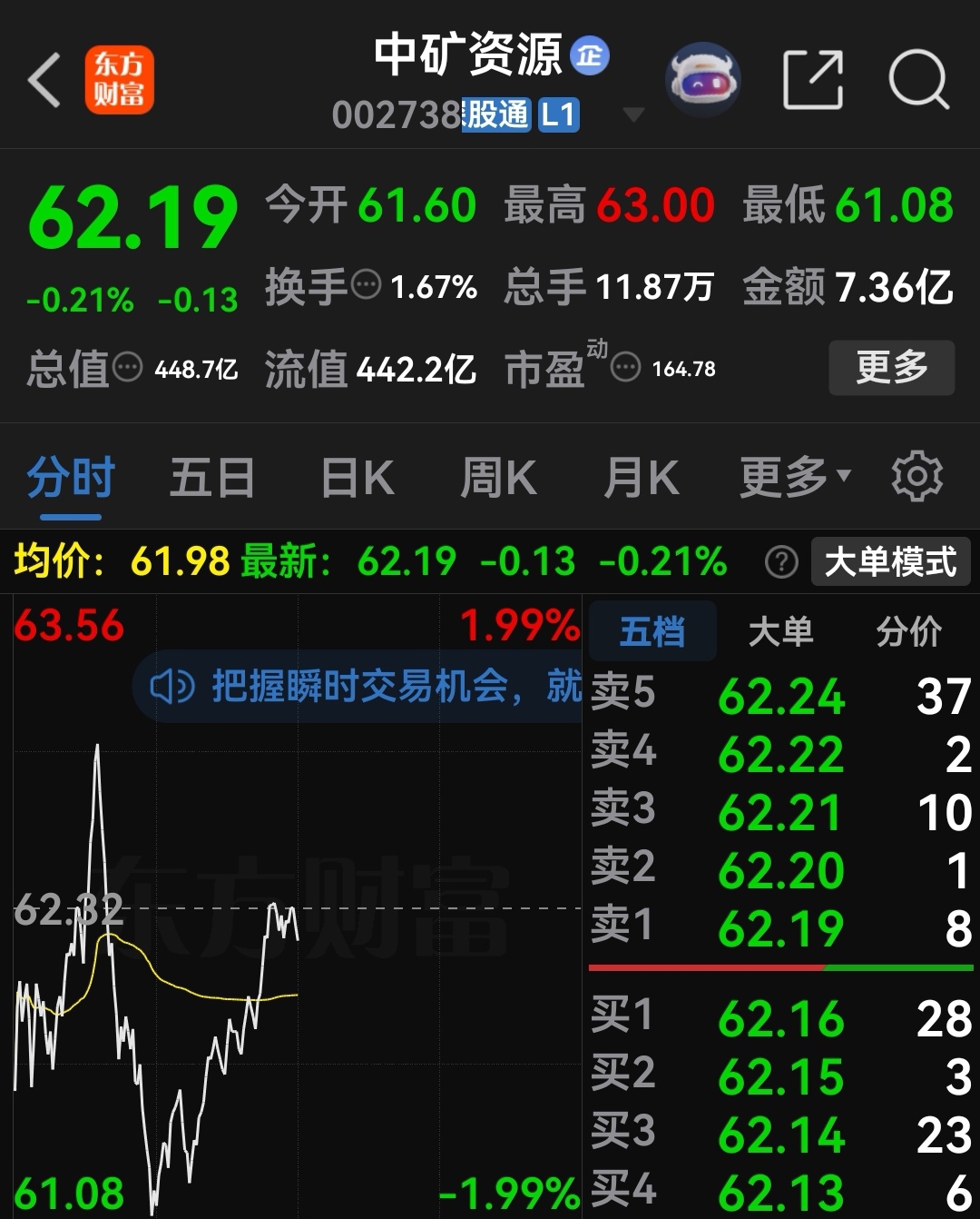 以61.38挂单买回68.78卖掉的中矿资源,大盘在3800点之上不温不火地摇晃