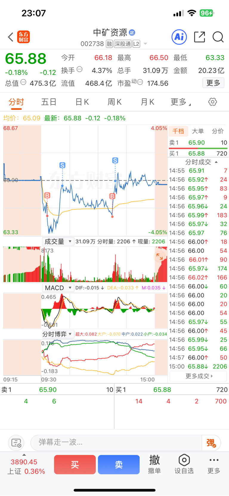 $中矿资源(SZ002738)$ 看到期货异动马上B进去