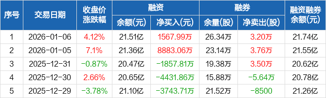中矿资源:融资净买入1567.99万元,融资余额21.51亿元(01-06)