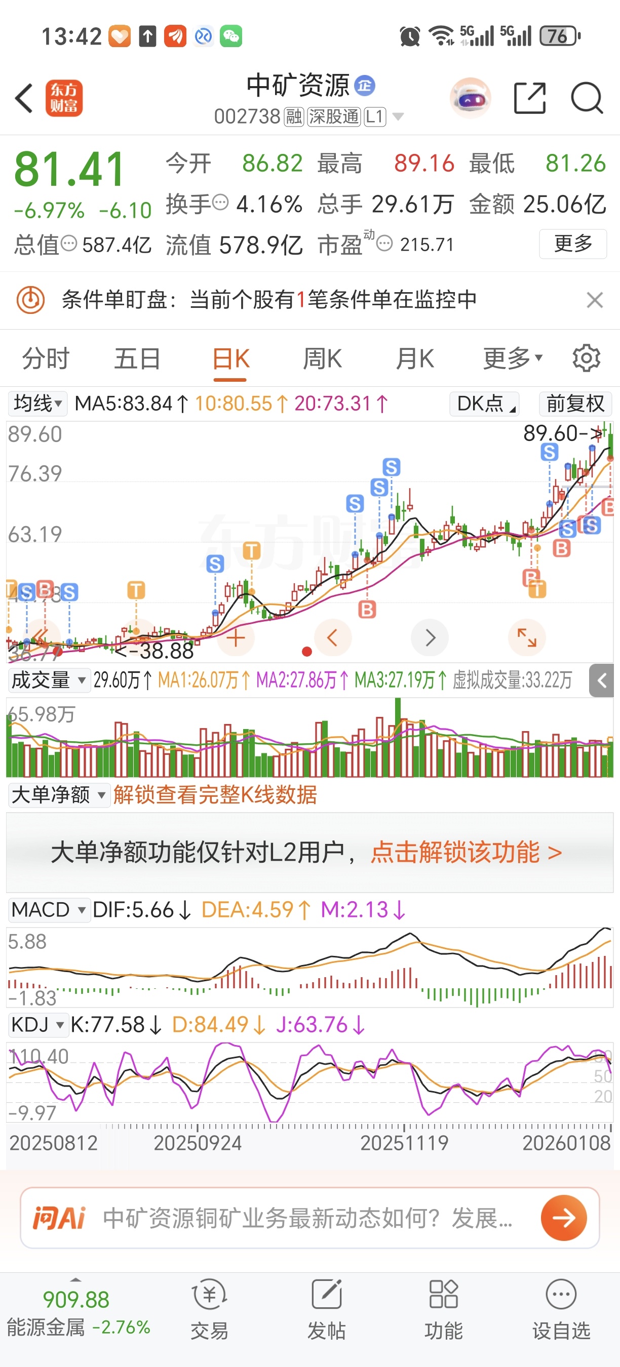 $中矿资源(SZ002738)$ 少量补仓