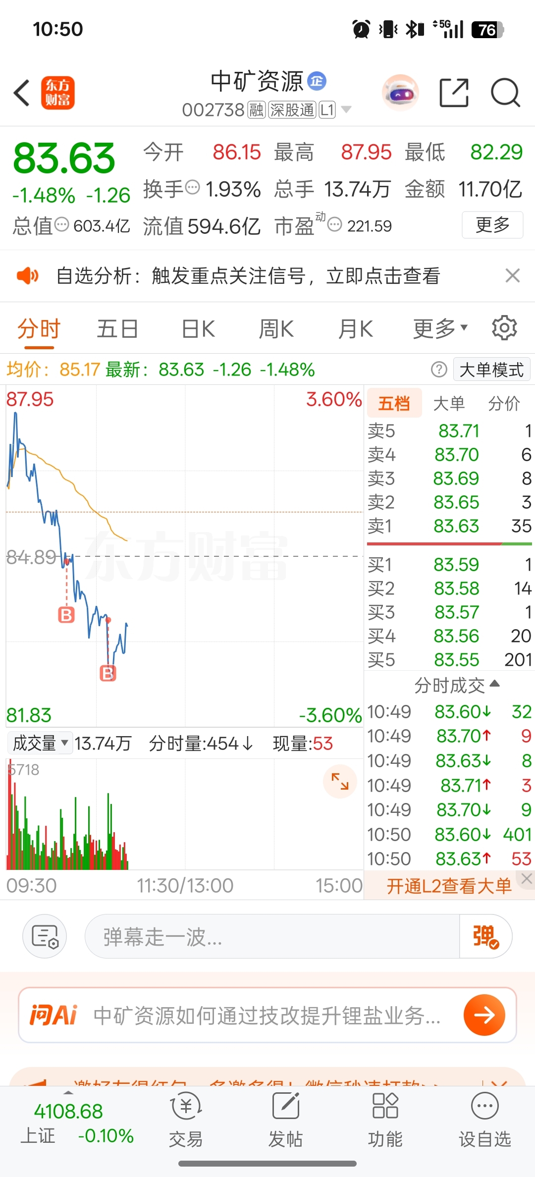 $中矿资源(SZ002738)$ 弄不到低点