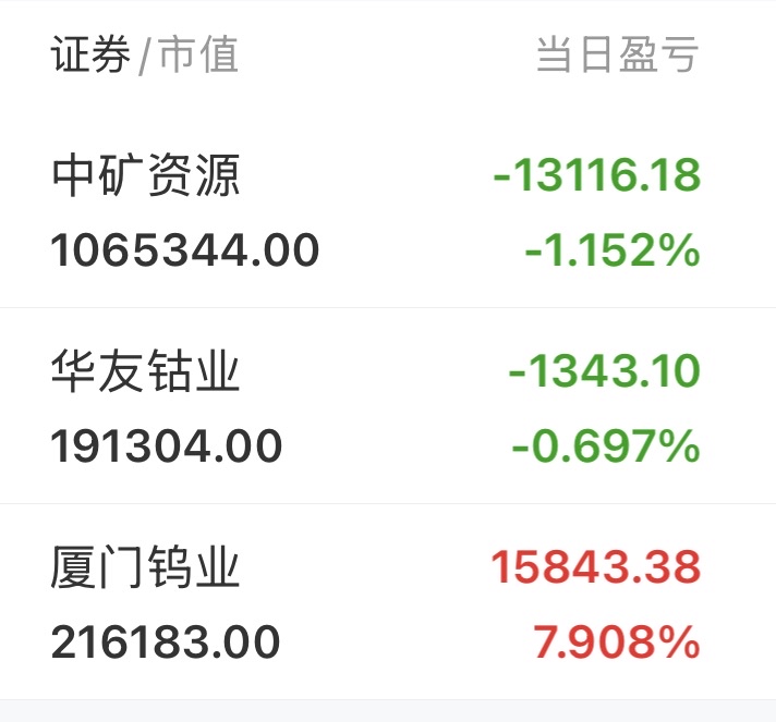 $中矿资源(SZ002738)$ 今天不亏不算,多亏了布局厦门钨业