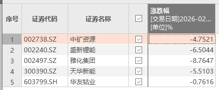 经初步梳理,中矿资源、盛新锂能、雅化集团、天华新能、华友钴业等企业在津巴布韦均有锂矿相关布局。2月26日,东方财富数据显示,这5家公司股价均出现不同程度下跌,跌幅分别为4.75%、6.5%、8.76%、5.51%、0.76%。