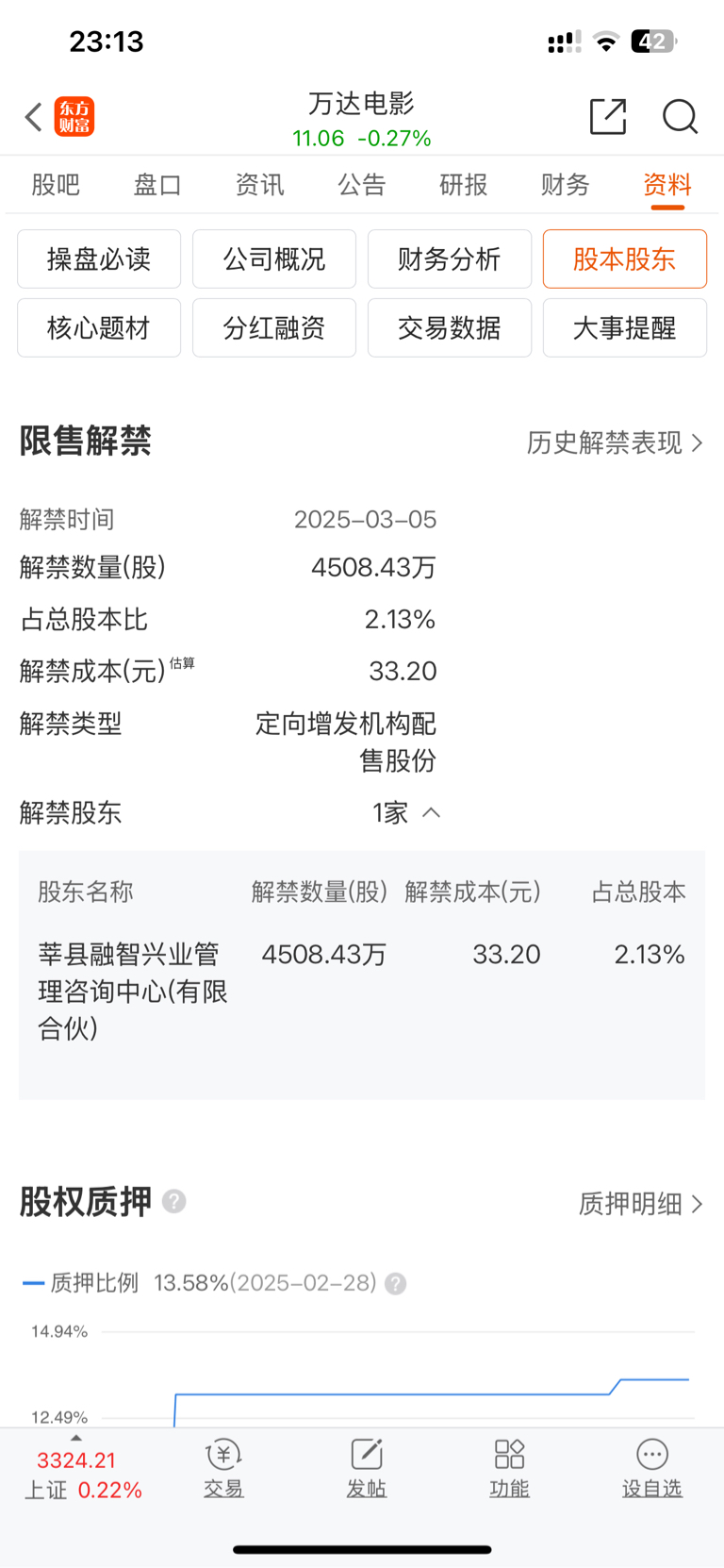 $万达电影(SZ002739)$ 解禁成本33.2,怕啥子