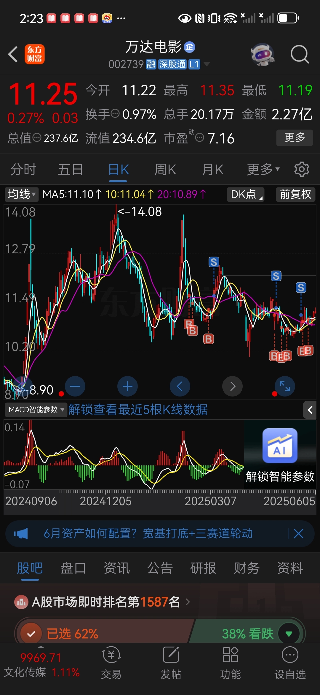 $万达电影(SZ002739)$ 跑输大盘可惜啊#炒股日记#