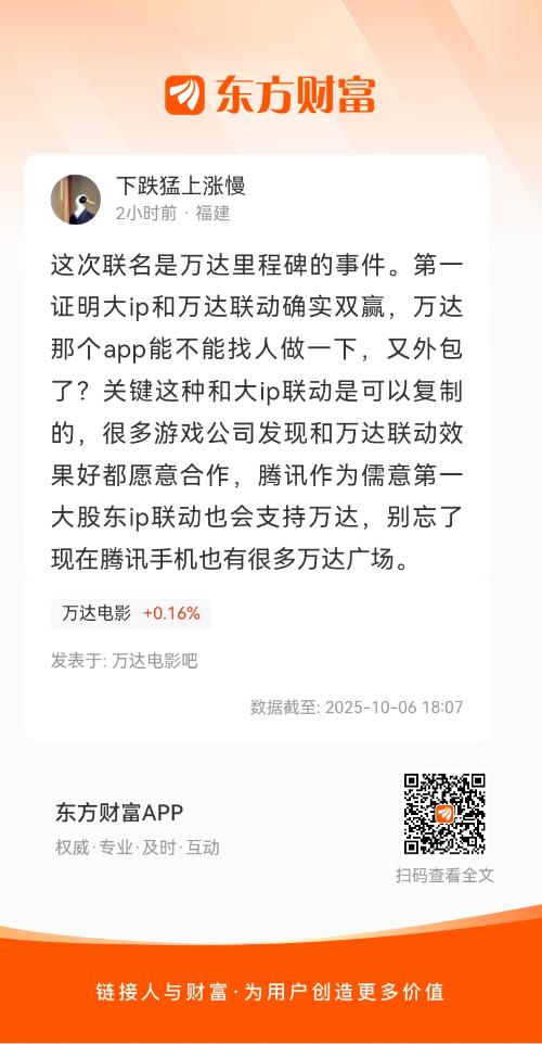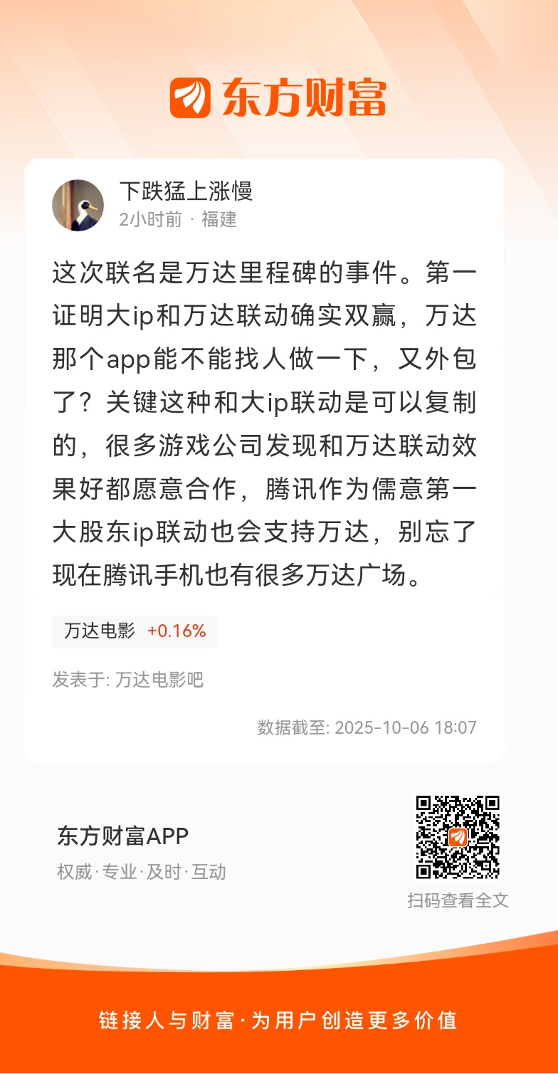 这次联名是万达里程碑的事件。第一证明大ip和万达联动确实双赢,万达那个app能不能找人做一下,又外包了?关键这种和大ip联动是可以复制的,很多游戏公司发现和万达联动效果好都愿意合作,腾讯作为儒意第一大股东ip联动也会支持万达,别忘了现在腾讯手机也有很多万达广场。