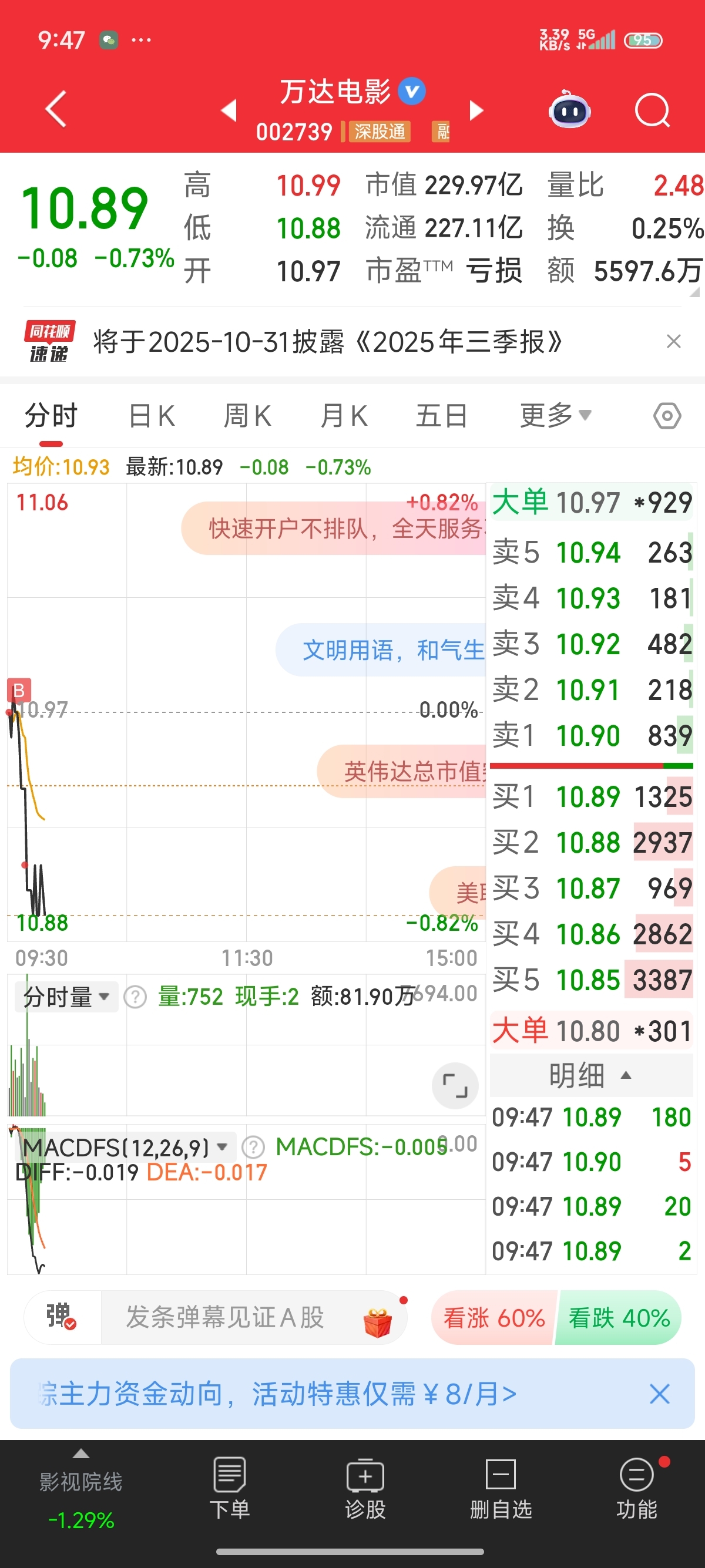 $万达电影(SZ002739)$ 万达电影我又来了。今天开始分批低吸买!