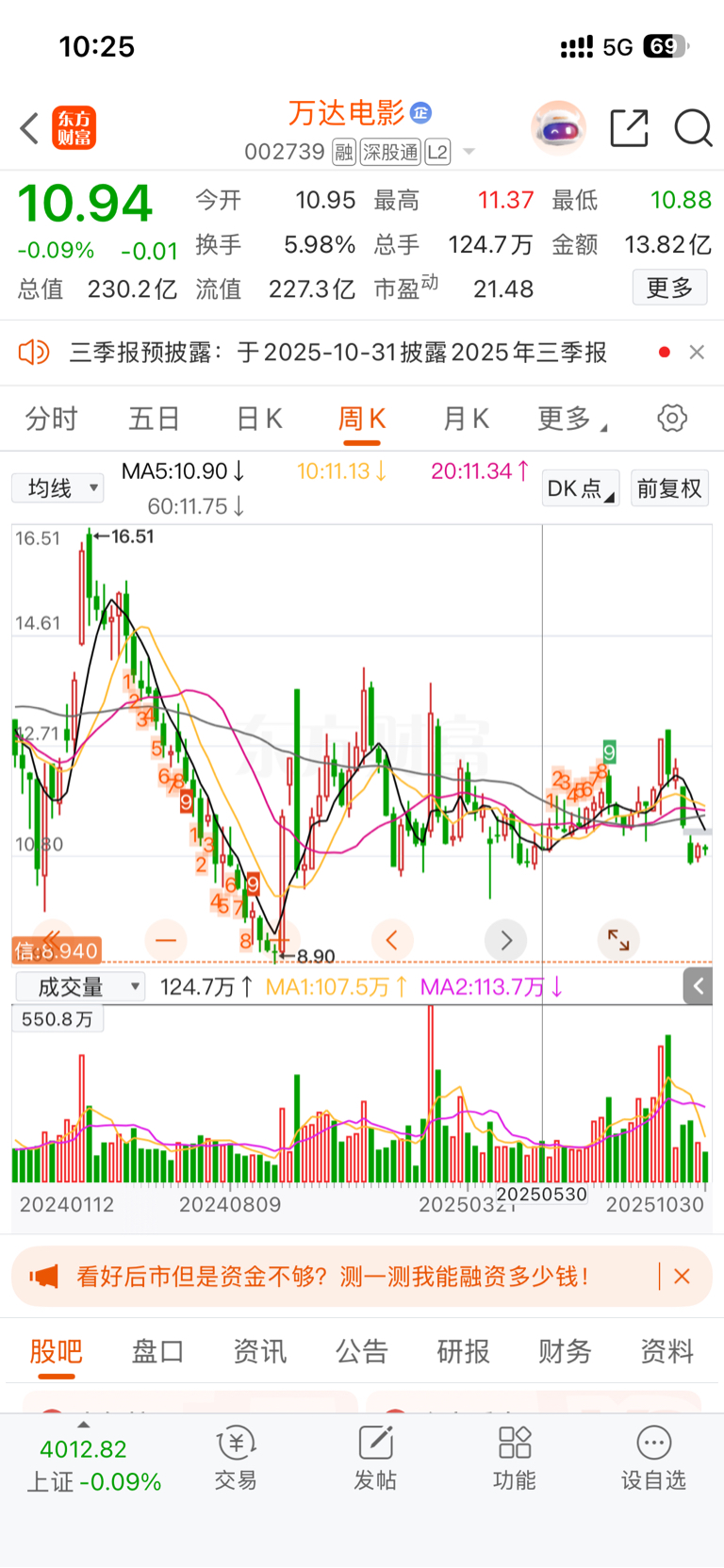 $万达电影(SZ002739)$ 30万底舱等待今天财报,不知财报后是否来个暴力下跌呢?已经能看到我成本了。控制仓位,等待趋势反转再进入加仓操作。