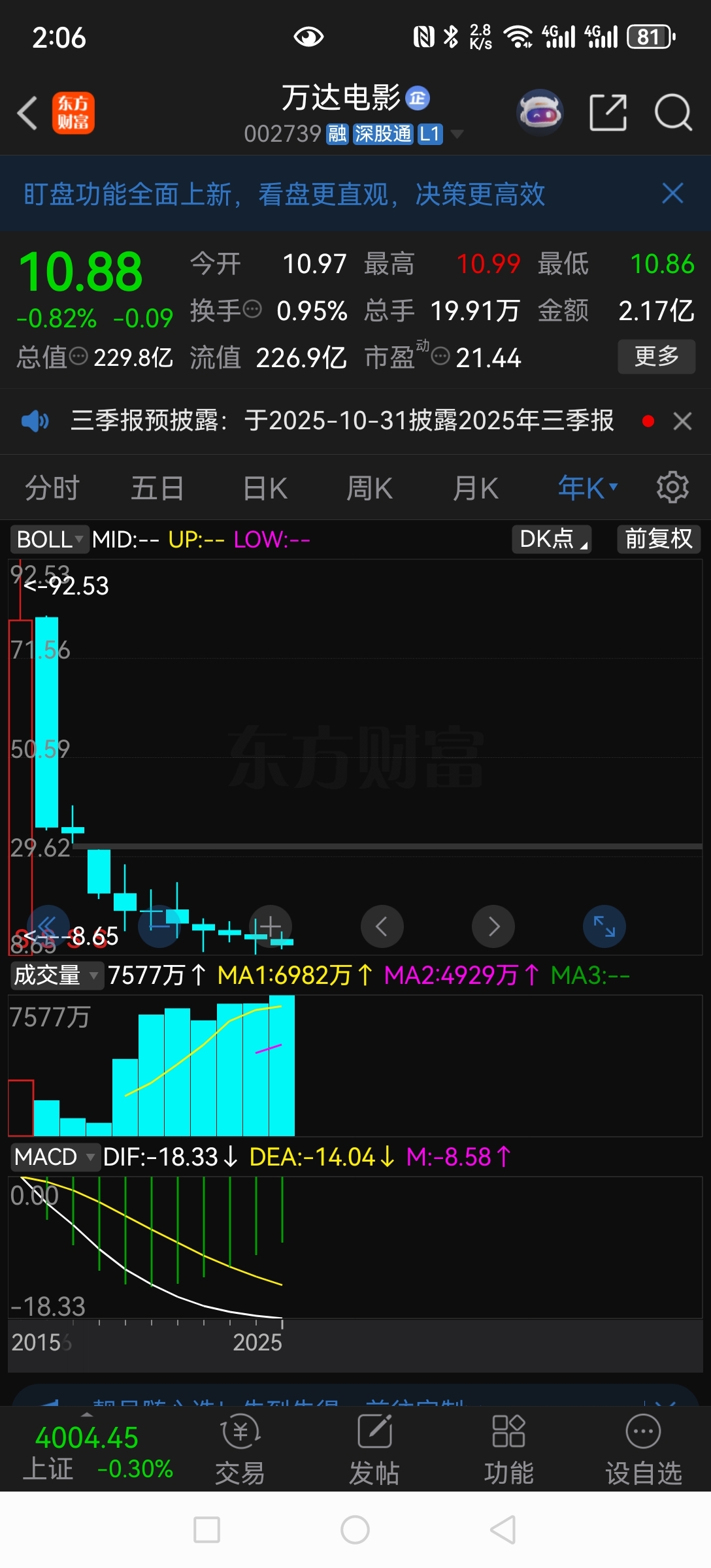 $万达电影(SZ002739)$ 年线这个样子,独一无二了