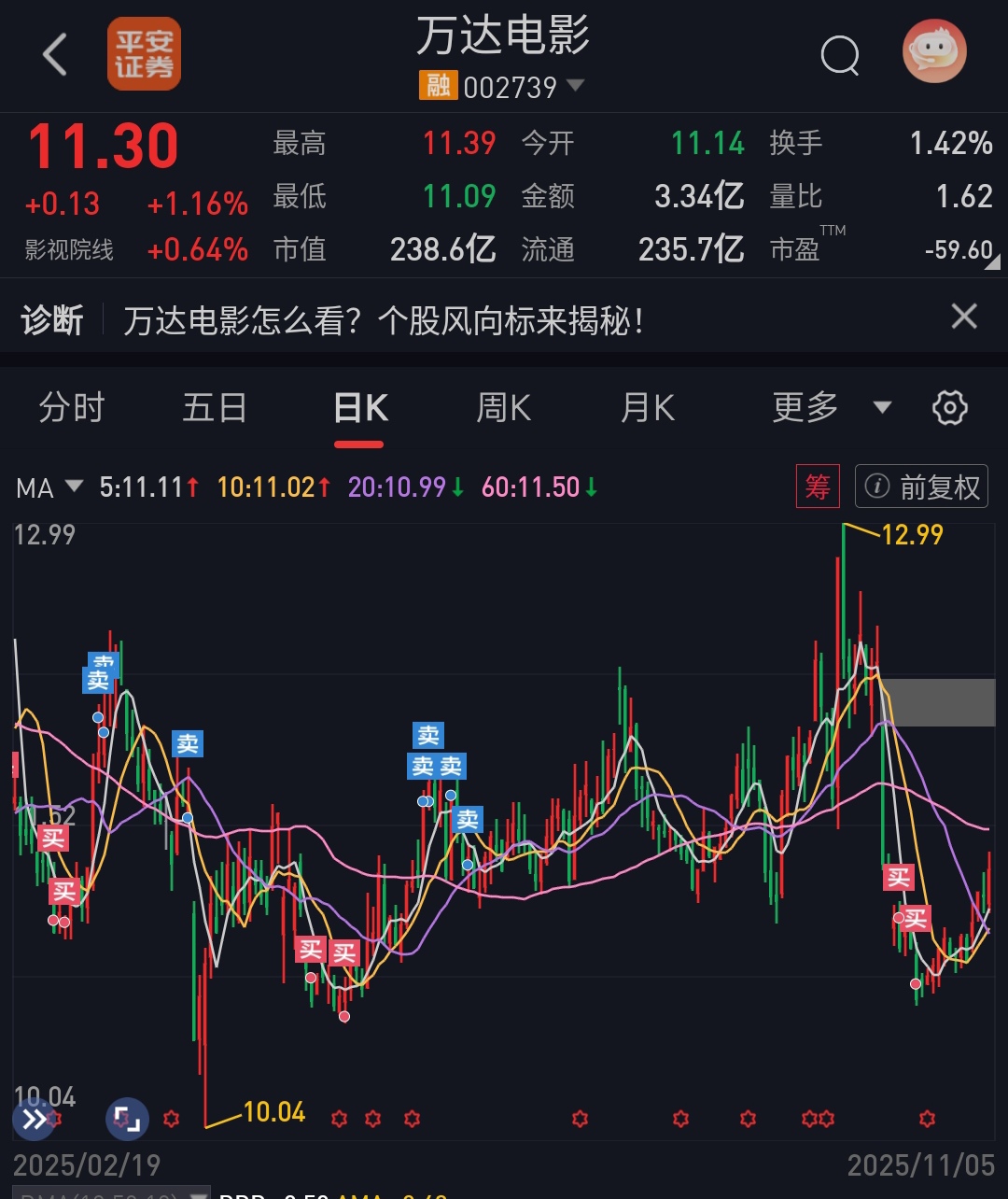 $万达电影(SZ002739)$ 炒这个股就跟捡钱一样