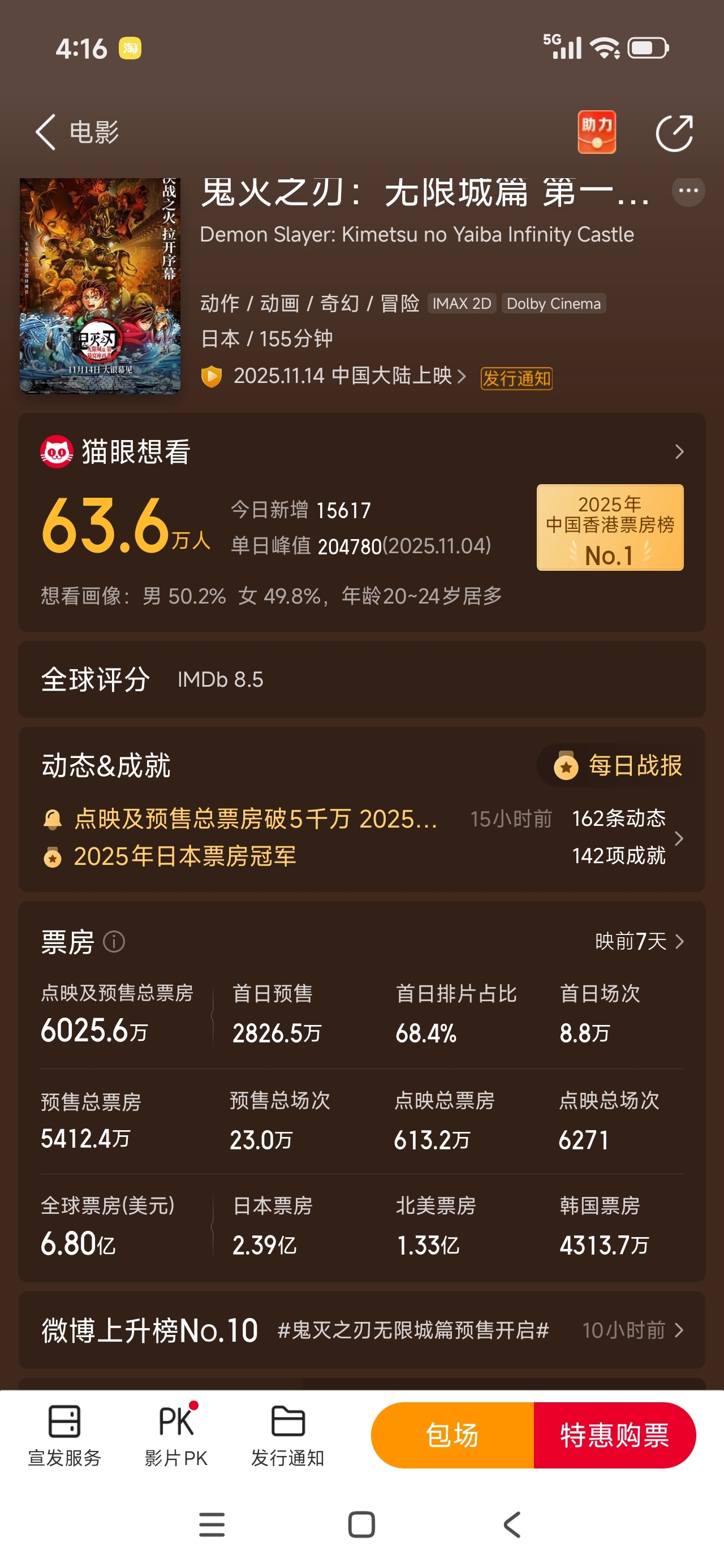 $万达电影(SZ002739)$ 点映预售可以到1亿多吧