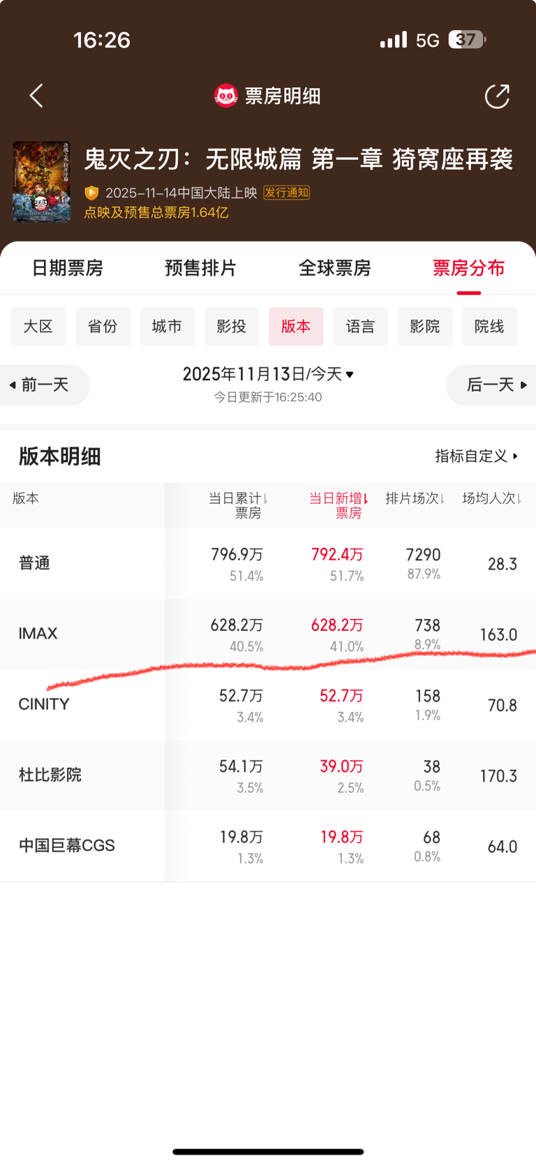 在全国所有银幕占比不到百分之一的lMAl厅贡献了百分之四十的票房,而万达的lMA