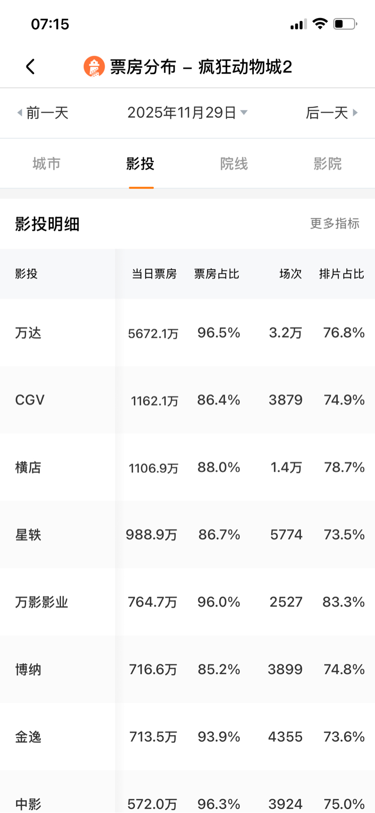 $万达电影(SZ002739)$ 下面第2到7名加起来才能和万达电影比划比划,主力几个意思,每次影视传媒上涨万达永远落后影视板块反人性啊!