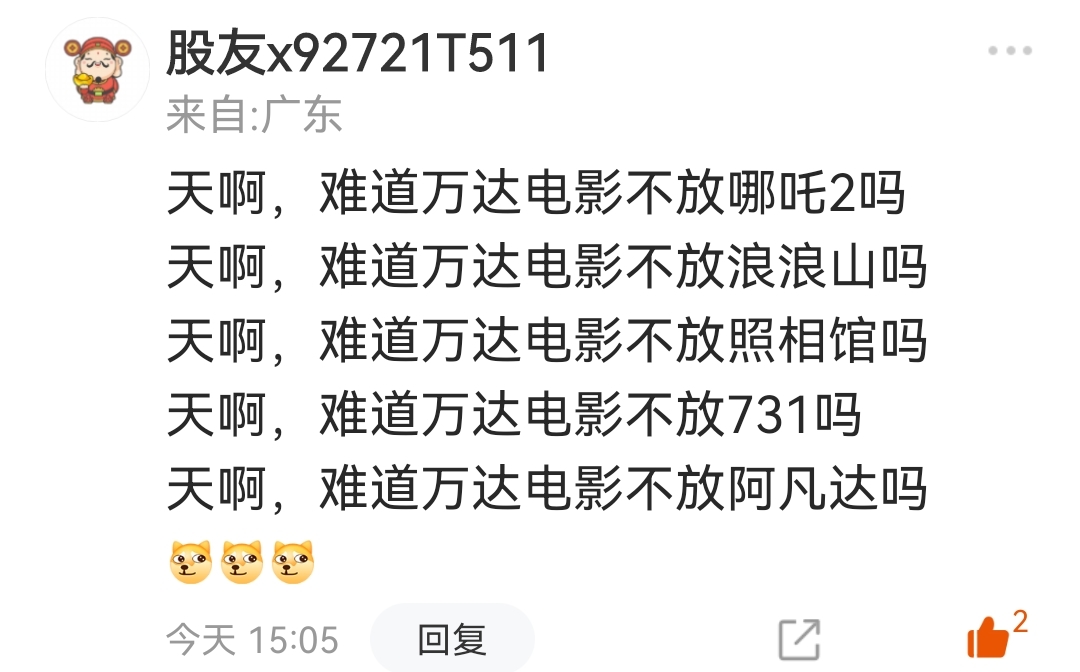 $万达电影(SZ002739)$ 这哥们儿好有意思,倒是很打脸那些天天数票房的。