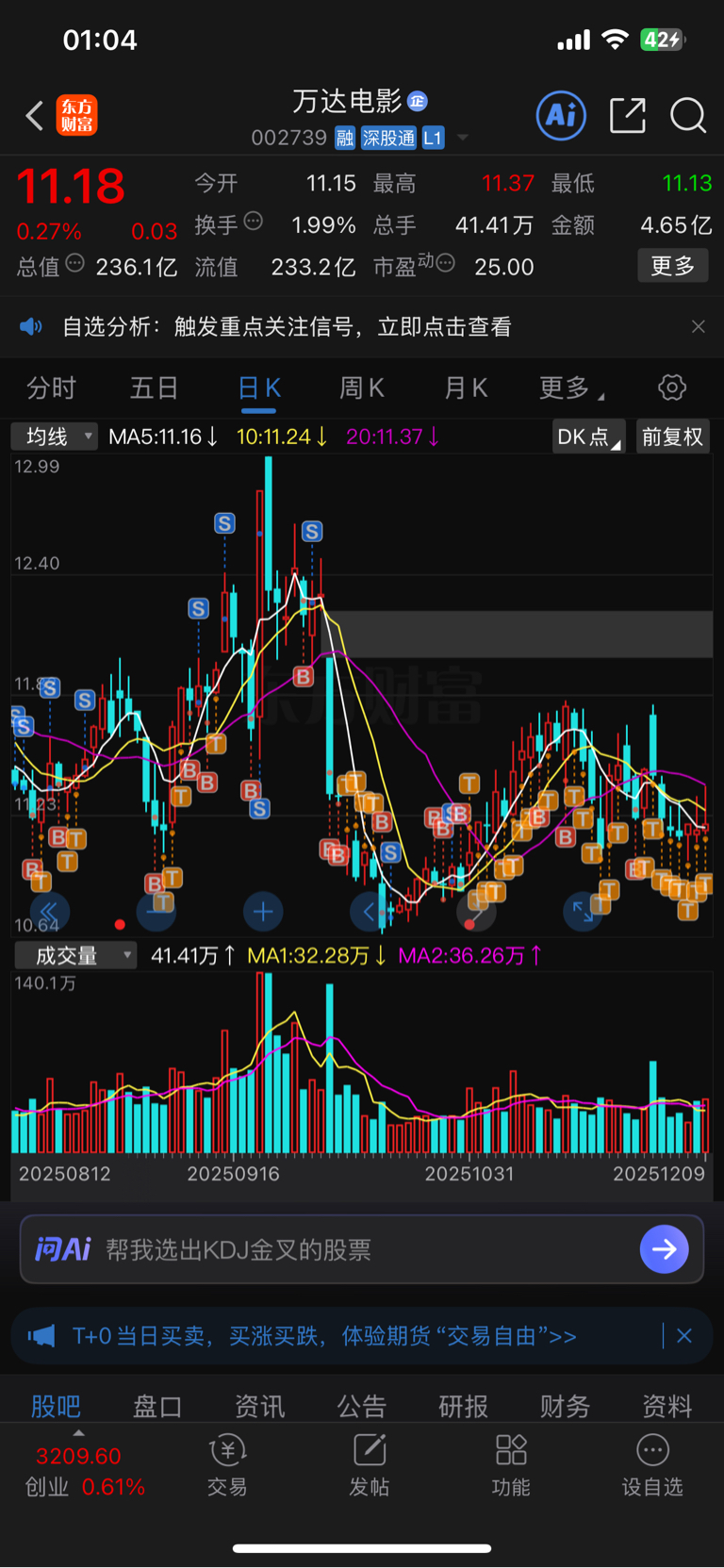 $万达电影(SZ002739)$ 虽然一直都是盈利的,但是也T的好幸苦
