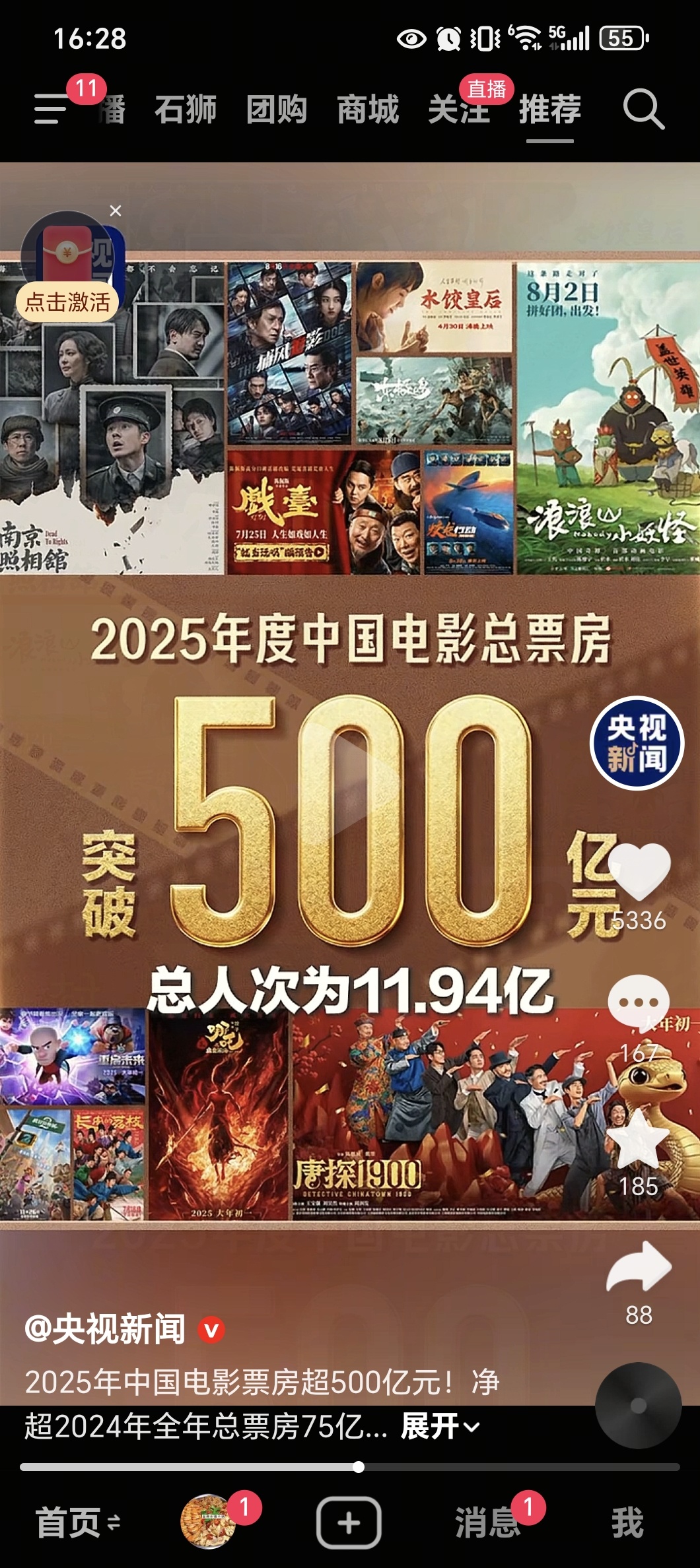 万达作为国内最大的院线,这是最大的利好了因为他的收入也会最多