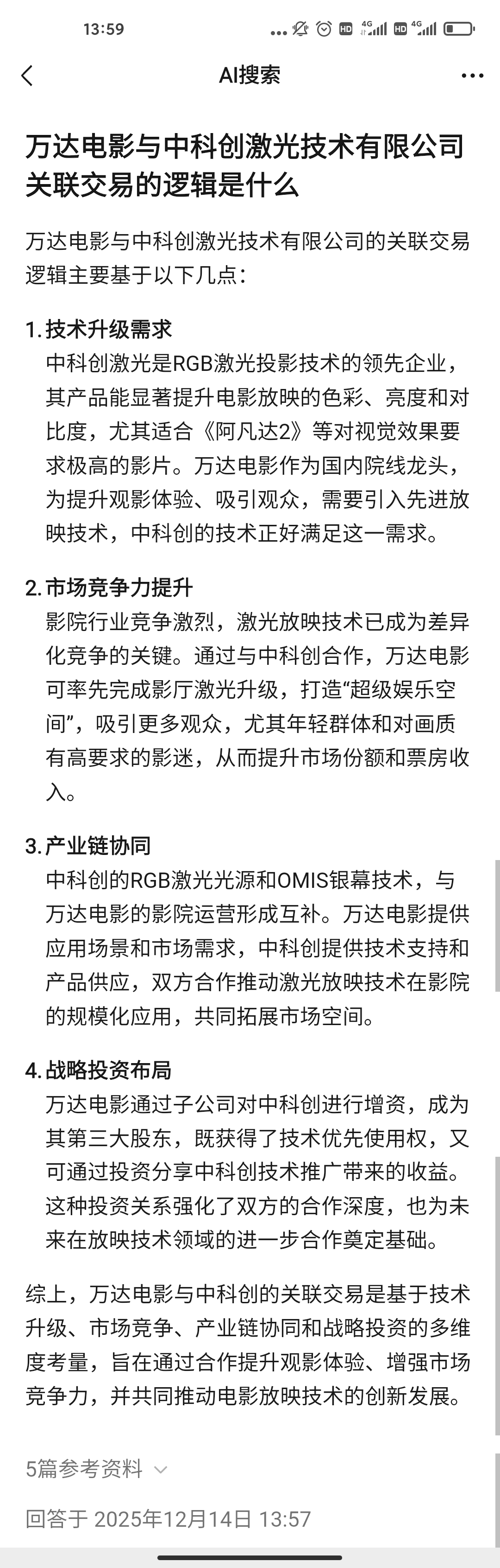 $万达电影(SZ002739)$ 万达电影看中的是中科创激光的RGB激光投影技术
