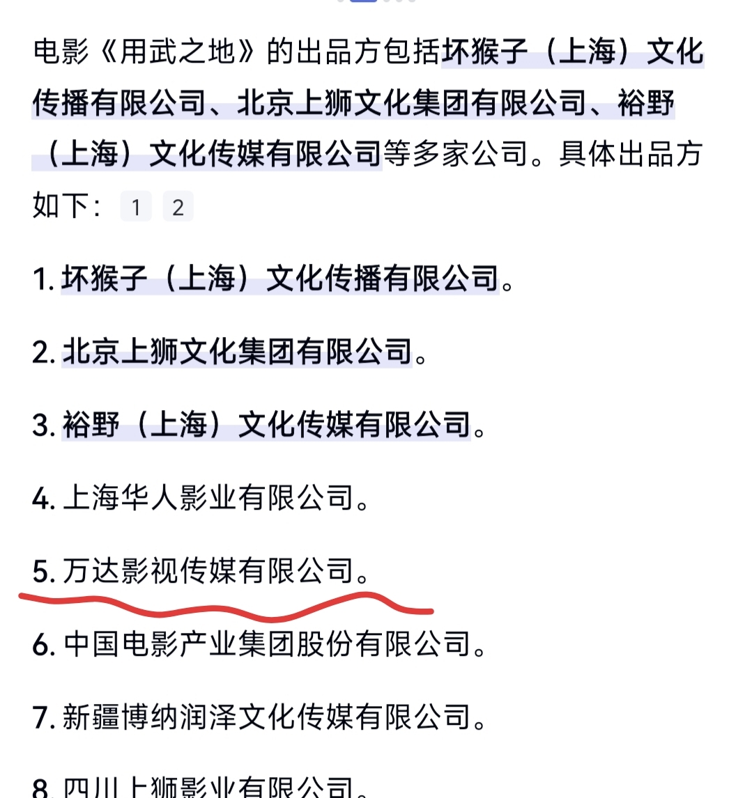 电影用武之地也是有万达电影的字公司万达影视参与出品呀!出品方也有万达