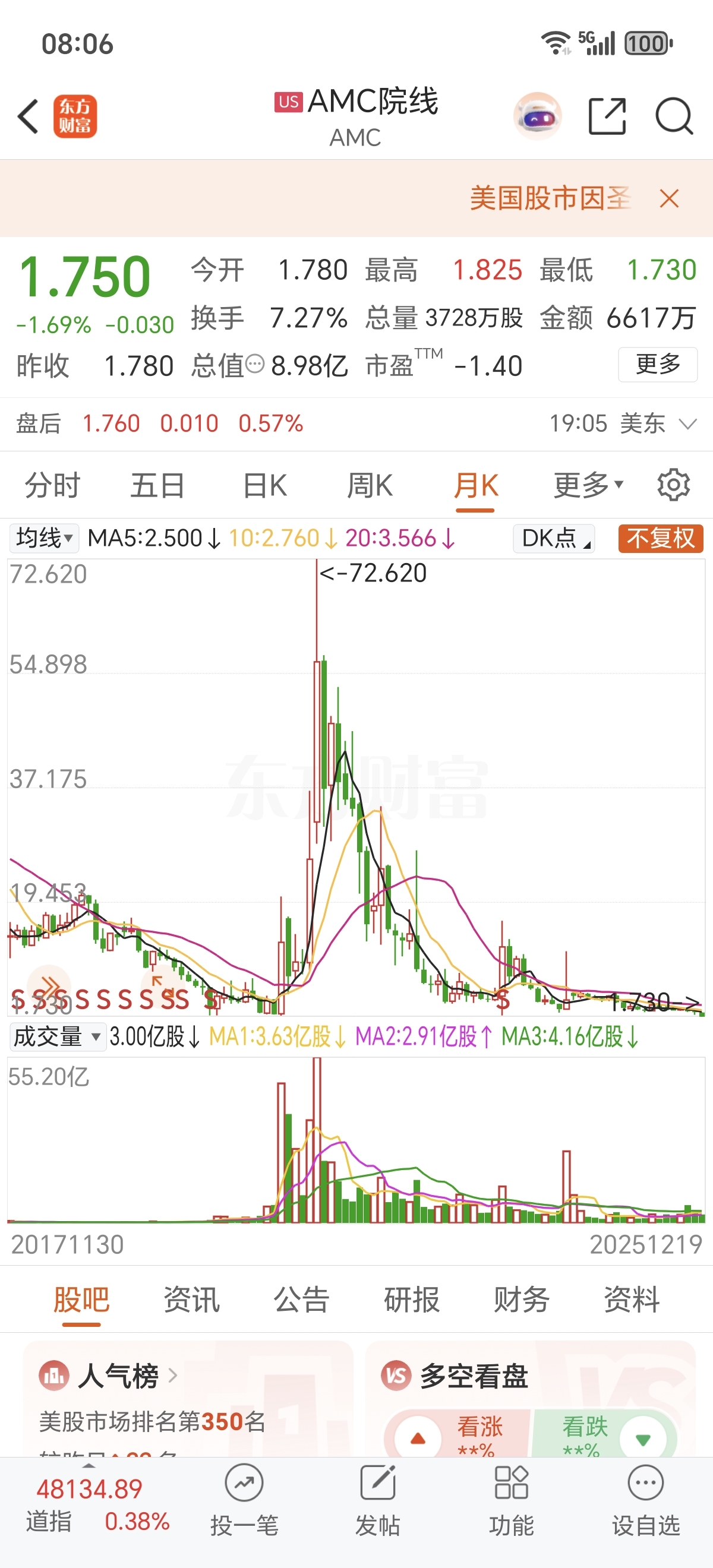 $万达电影(SZ002739)$ 夕阳产业,江河日下,看看AMC院线的惨淡之路吧,美股指数不断新高,这票不断新低!!!