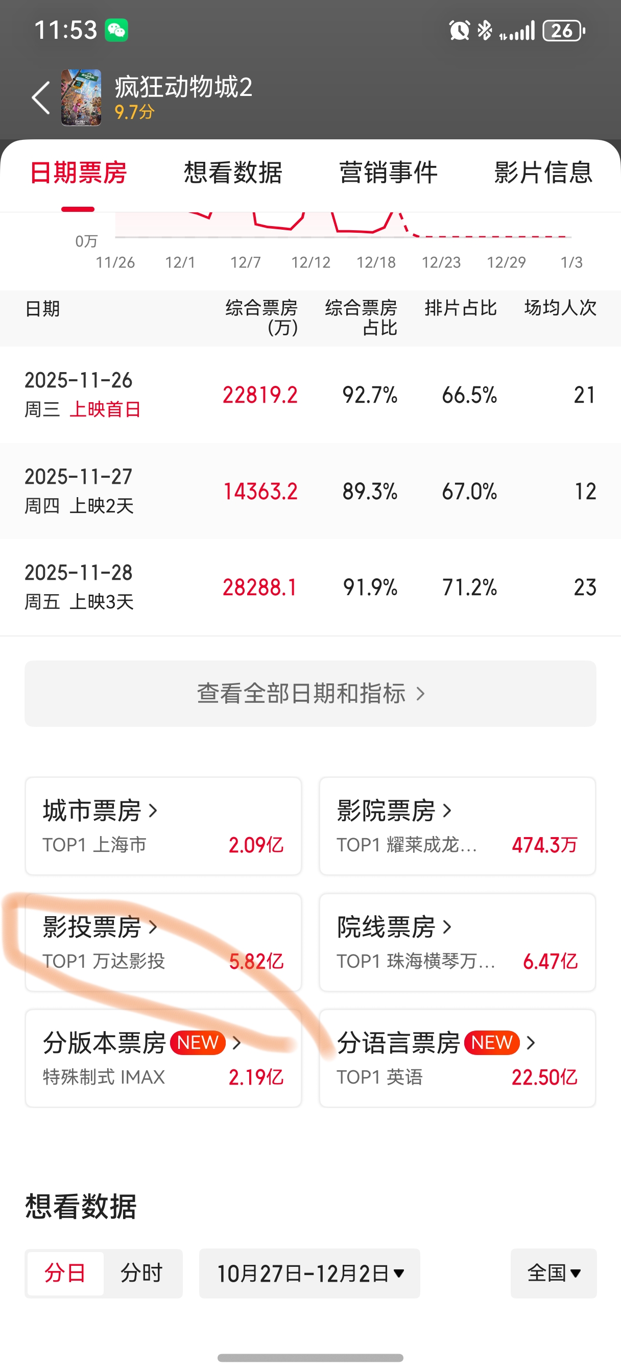 $万达电影(SZ002739)$ 50%+是院线拿,实打实的现金流啊