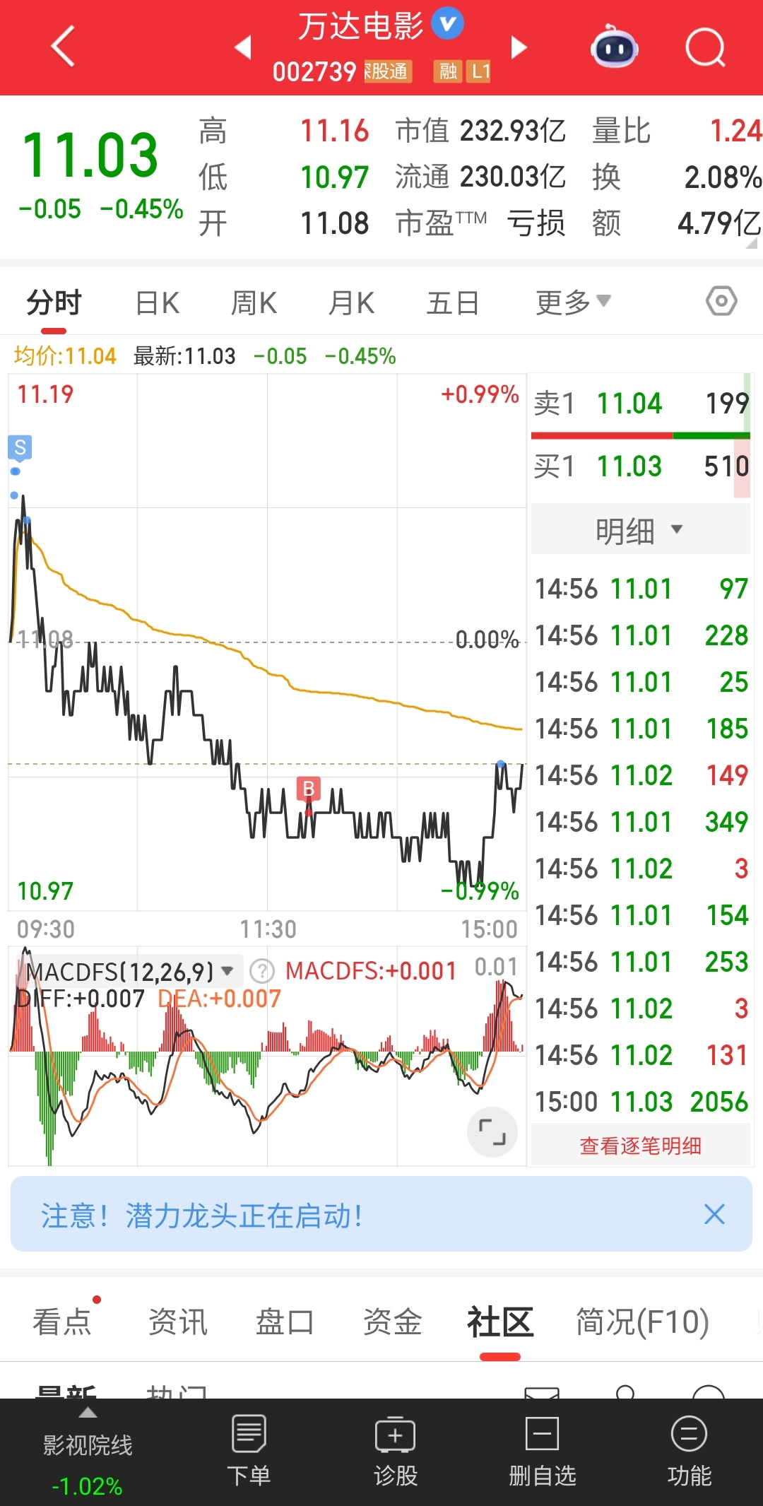 $万达电影(SZ002739)$ 管它是涨是跌,安心做t呗