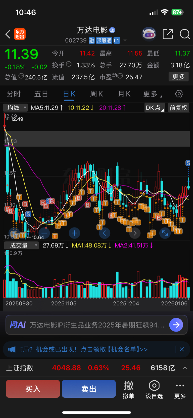 $万达电影(SZ002739)$ 还好拉高卖了……连红4天,该回调一下了