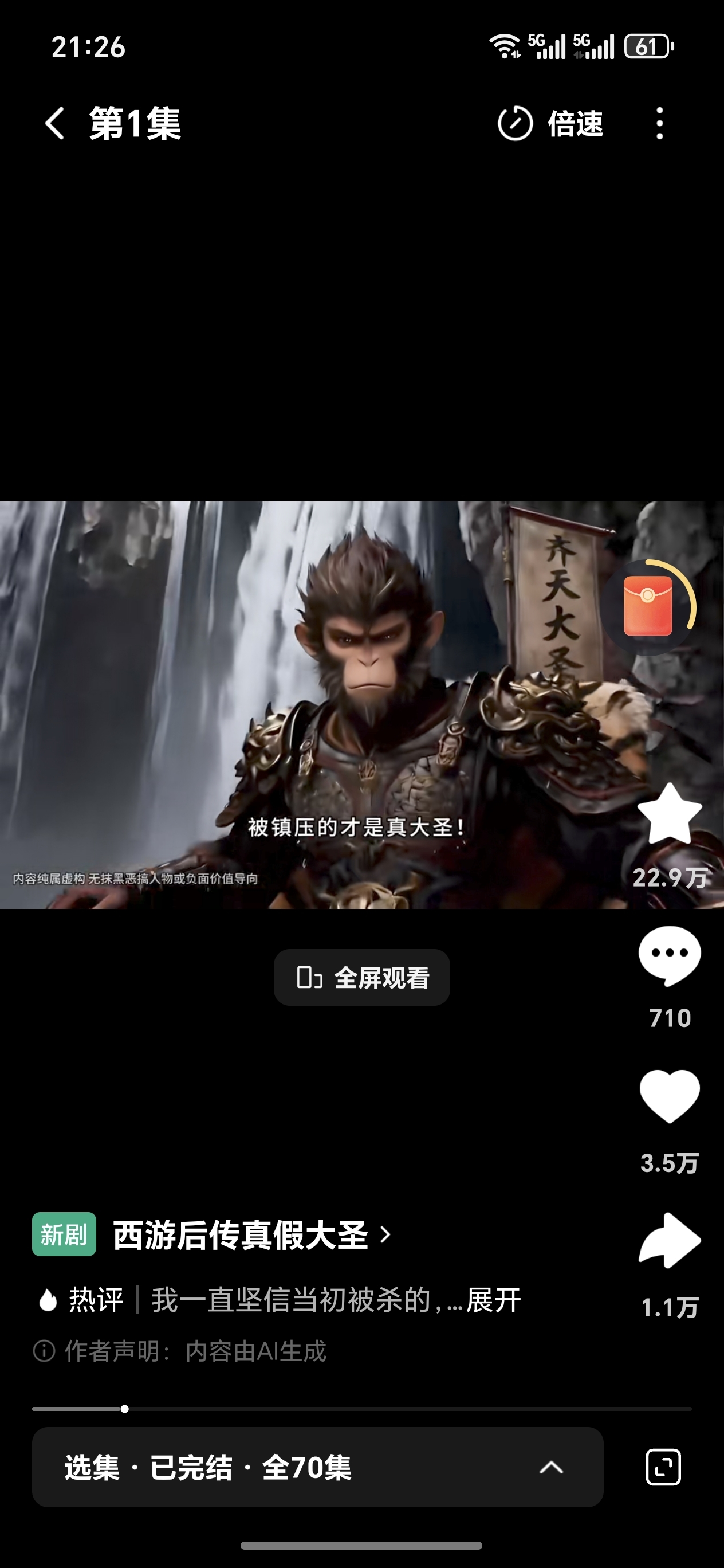 $万达电影(SZ002739)$ 快去看,真假大圣,估计比万达拍的好看