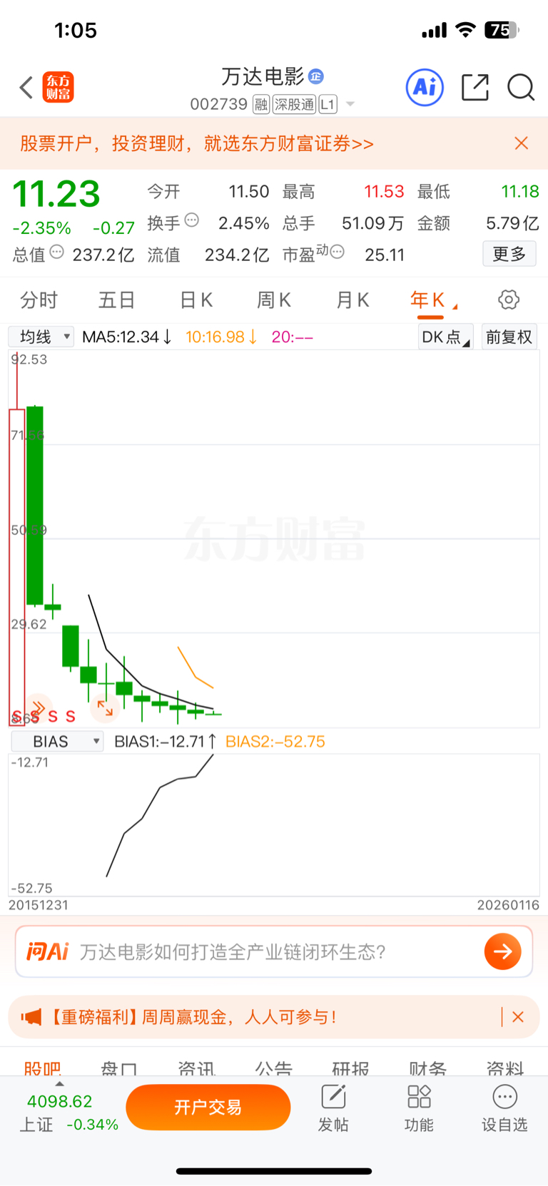 $万达电影(SZ002739)$ 一起数一数有几个绿柱