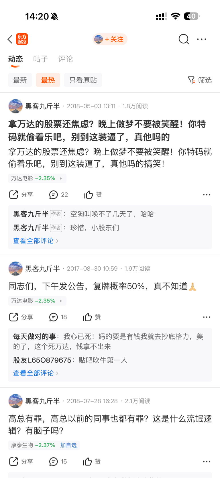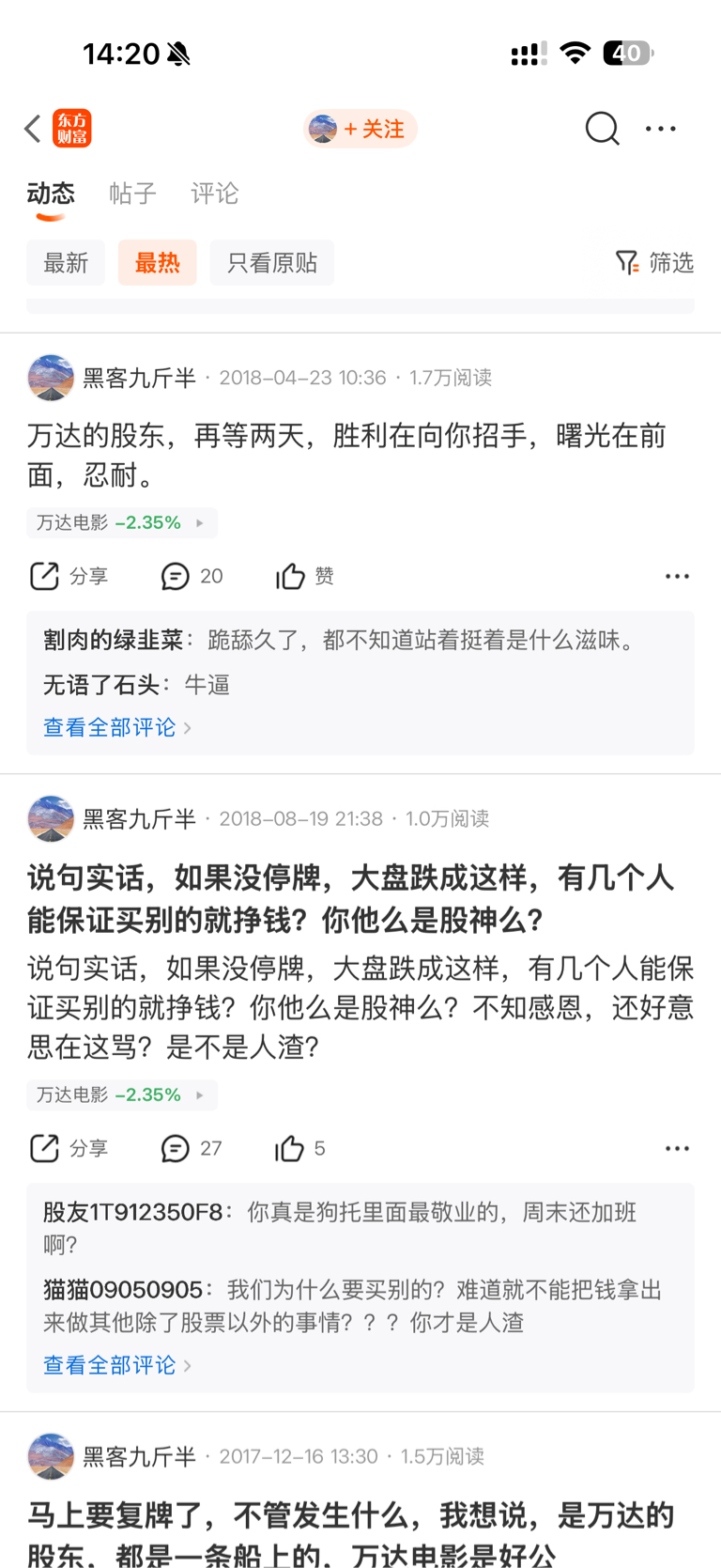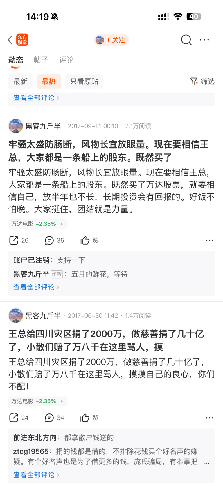 这个人从2017年开始一直维护万达,让大家拿住、一看散户要卖他就出来稳军心,让大