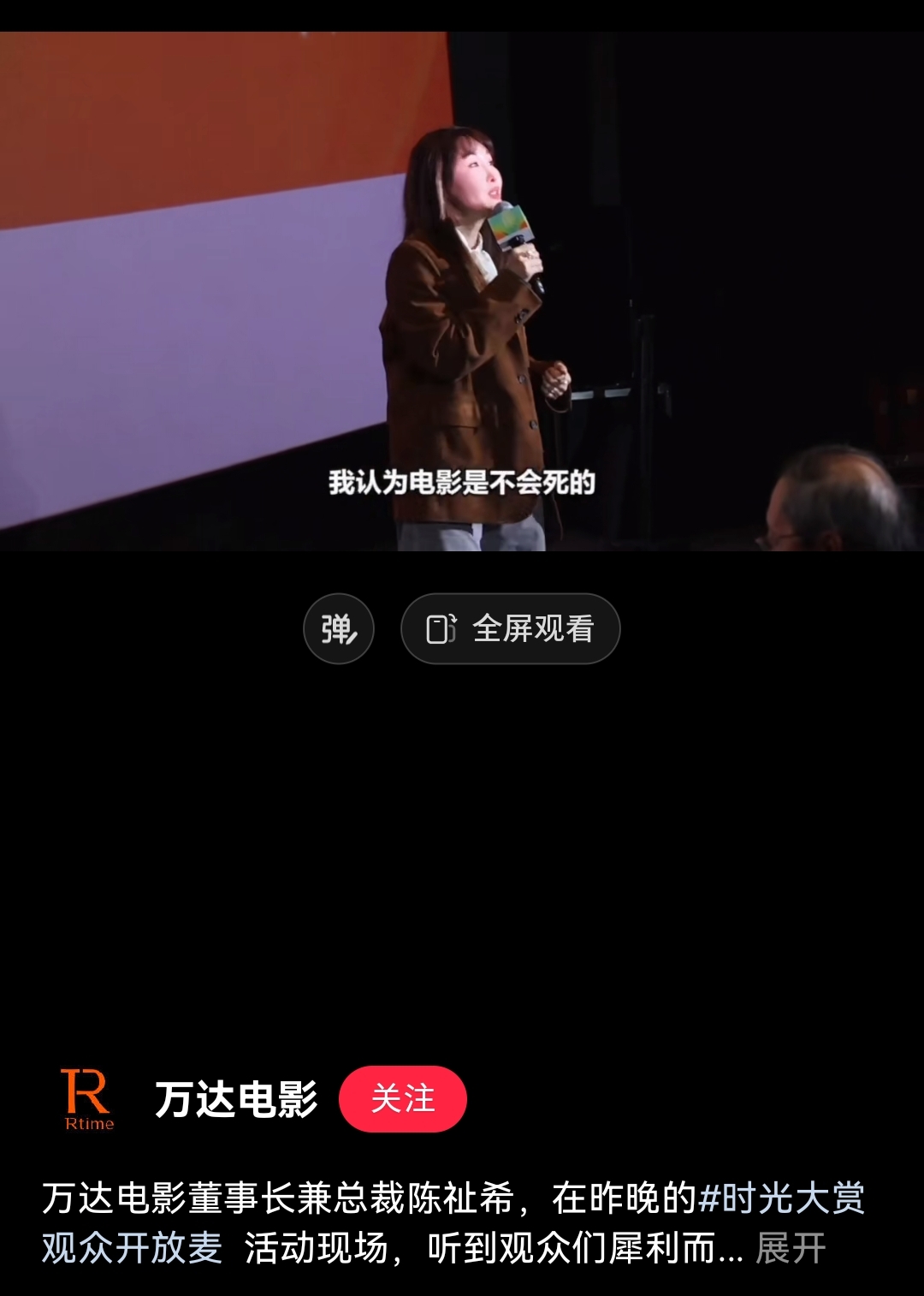$万达电影(SZ002739)$ CEO露脸了,她说电影不会死,她是不是不关注十年跌?