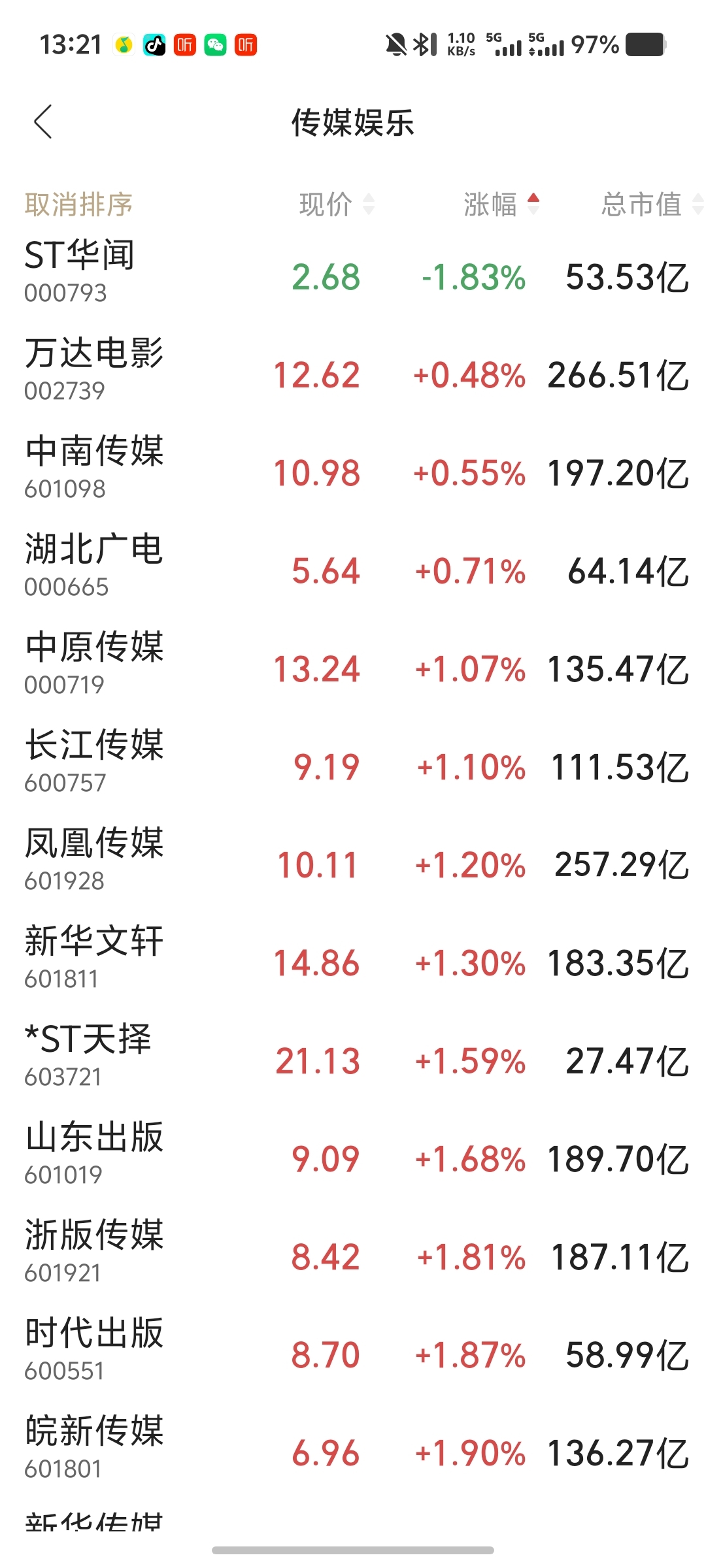 $万达电影(SZ002739)$ 麻辣了隔壁。板块倒数第二。华闻24年可是涨了10倍,然后戴帽了才这样。你万达浓眉大眼的,竟然混到这般田地。羞死人啊