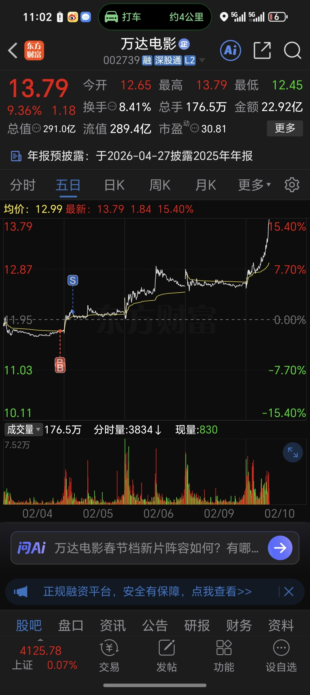 $万达电影(SZ002739)$ 与你无缘,不后悔,坚持自己操作风格!
