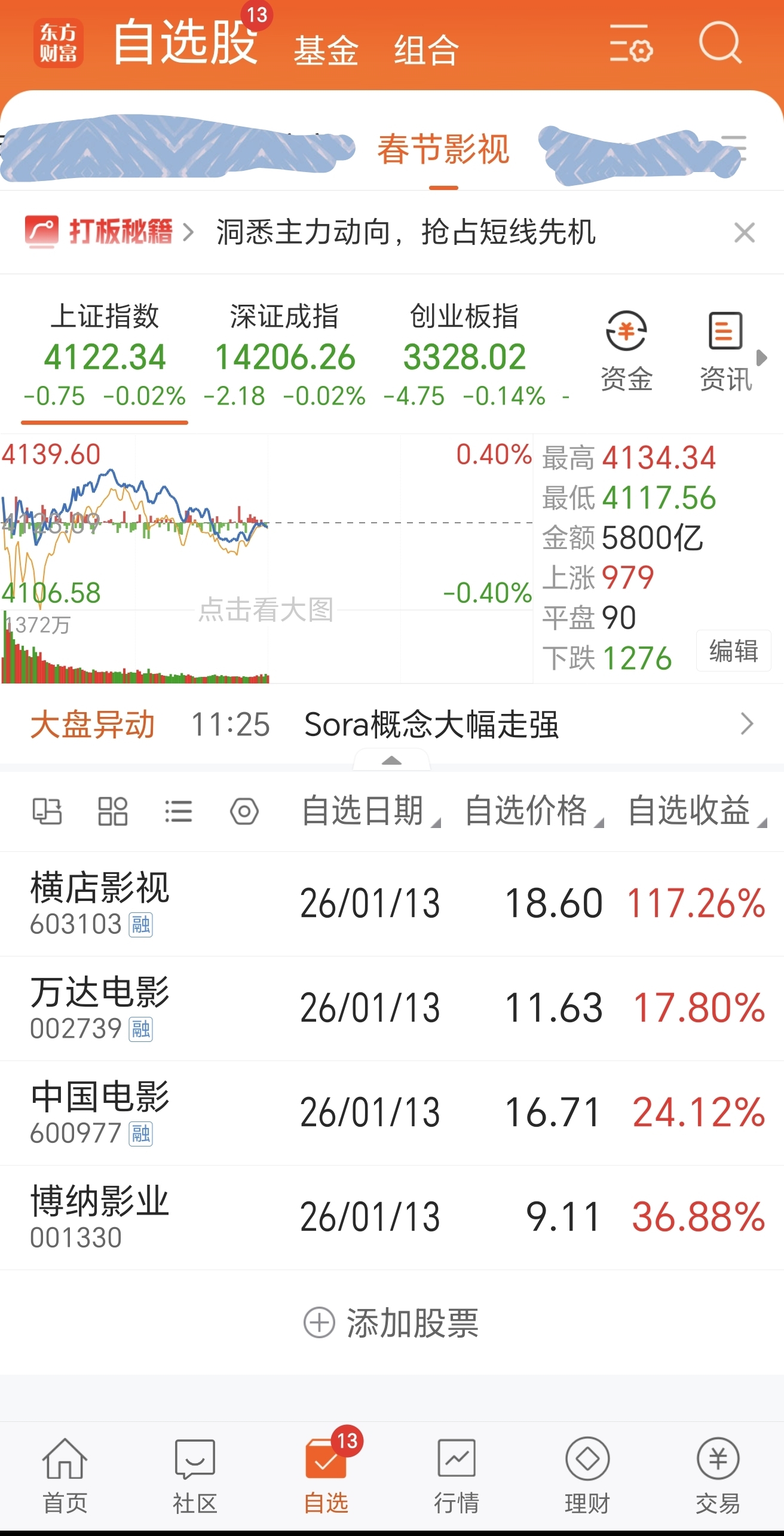 $万达电影(SZ002739)$ 看走眼了,挣了点,但很失望,走了。挑了四支,买入一支,偏偏是最弱的一支!