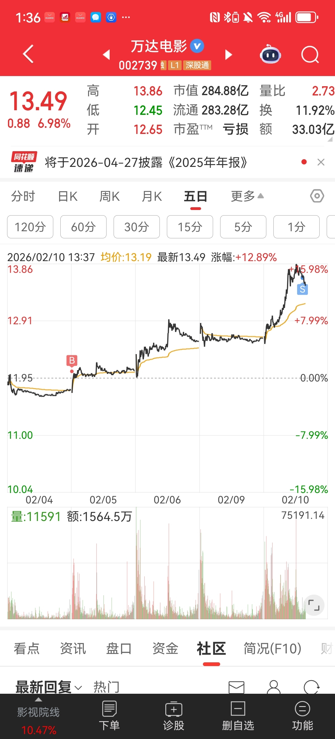 $万达电影(SZ002739)$ 留下的发财,感谢万达电影,好股票