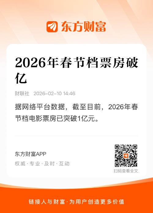 据网络平台数据,截至目前,2026年春节档电影票房已突破1亿元。
