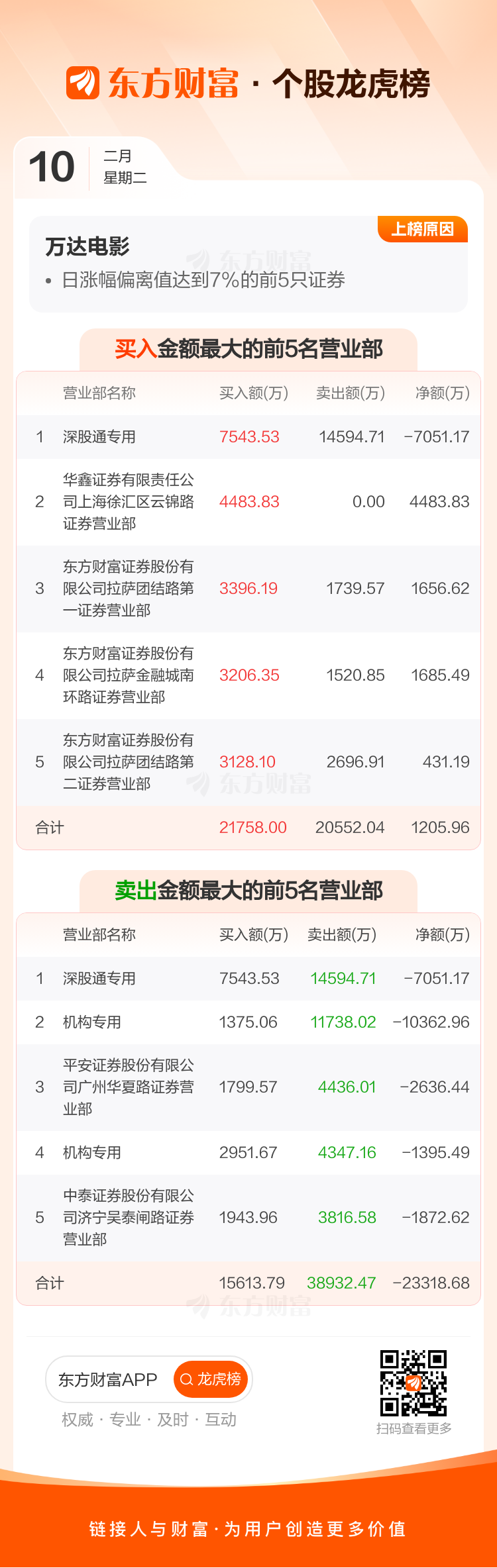 万达电影(002739)龙虎榜数据(02-10)