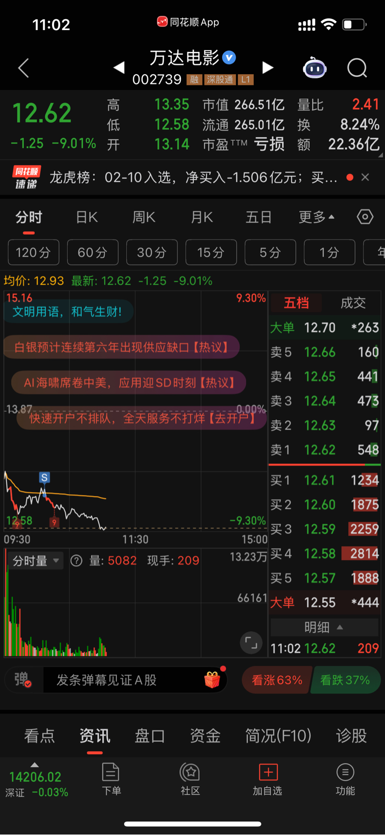 $万达电影(SZ002739)$ 被量化戏耍,昨天赚的成功亏回去了