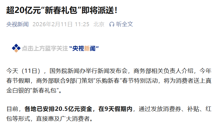 超20亿元“新春礼包”即将派送!