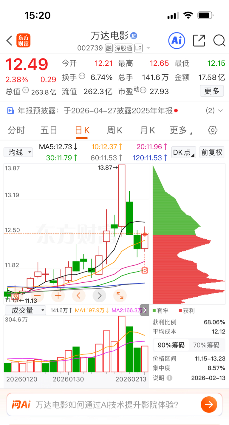 $万达电影(SZ002739)$ 最后时刻陪主力一起看底牌,我们年后见