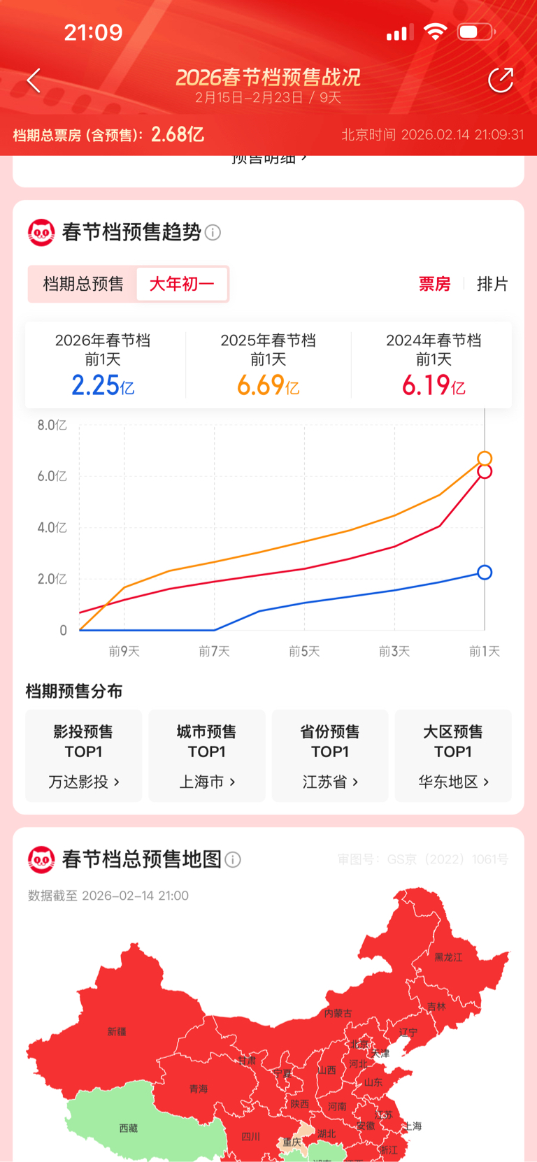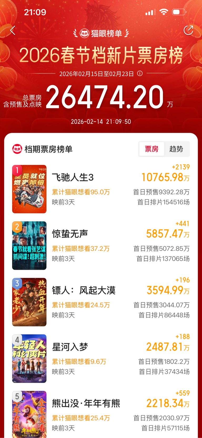$万达电影(SZ002739)$ $光线传媒(SZ300251)$ $博纳影业(SZ001330)$ 当下最新数据,飞驰人生一支独秀,总票房预售只有过去两年的三分之一